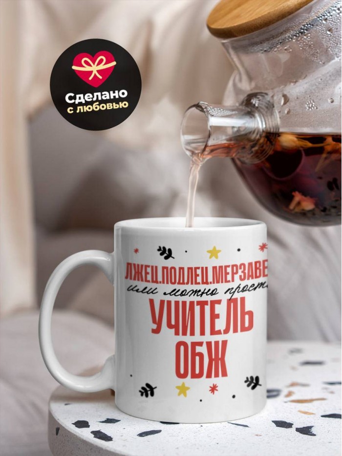 Сувенирная белая кружка с принтом "Лжец, подлец, мерзавец или можно просто учитель обж" – отличный подарок родным и близким людям для любого случая. Уникальный дизайн делает ее неповторимой и привлекательной для глаз. Принты могут быть разными: от ярких креативных решений, которые идеально подойдут молодежи, до классических элегантных узоров, радующих взгляд людей любого поколения во время чаепития. Рисунок наносится с использованием специализированного оборудования, материалами, прошедшими испытания на пригодность к использованию в быту.