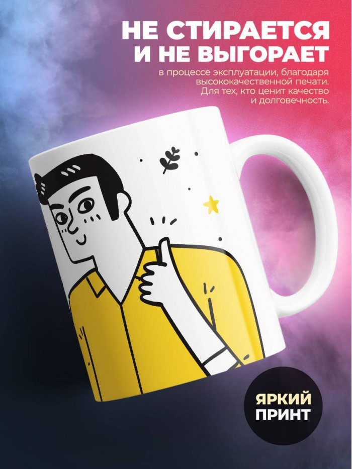 Кружка с принтами поможет подчеркнуть индивидуальность и стиль, а также выделит владельца, из серой массы коллег на работе. Она станет отличным дополнением к утреннему кофе или вечернему чаепитию. Сувенирная кружка с изображениями высокого качества, станет незаменимым элементом интерьера вашей кухни или рабочего стола. Подарите себе или близким удовольствие от использования красивой и стильной кружки с принтами. Она украсит рабочее место, добавит в дом уюта и комфорта, а также напомнит о заботе, подарившего ее человека.