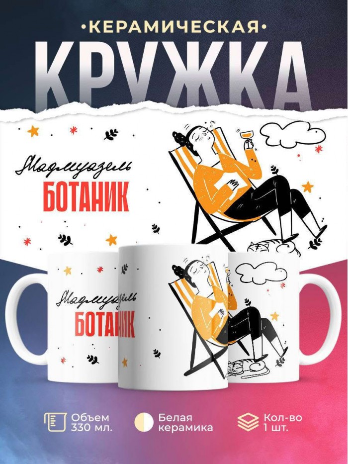 Сувенирная белая кружка с принтом "Мадмуазель ботаник" – отличный подарок родным и близким людям для любого случая. Уникальный дизайн делает ее неповторимой и привлекательной для глаз. Принты могут быть разными: от ярких креативных решений, которые идеально подойдут молодежи, до классических элегантных узоров, радующих взгляд людей любого поколения во время чаепития. Рисунок наносится с использованием специализированного оборудования, материалами, прошедшими испытания на пригодность к использованию в быту.