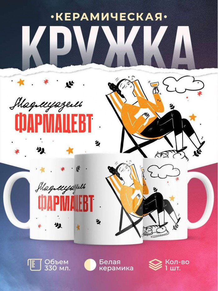 Сувенирная белая кружка с принтом "Мадмуазель фармацевт" – отличный подарок родным и близким людям для любого случая. Уникальный дизайн делает ее неповторимой и привлекательной для глаз. Принты могут быть разными: от ярких креативных решений, которые идеально подойдут молодежи, до классических элегантных узоров, радующих взгляд людей любого поколения во время чаепития. Рисунок наносится с использованием специализированного оборудования, материалами, прошедшими испытания на пригодность к использованию в быту.