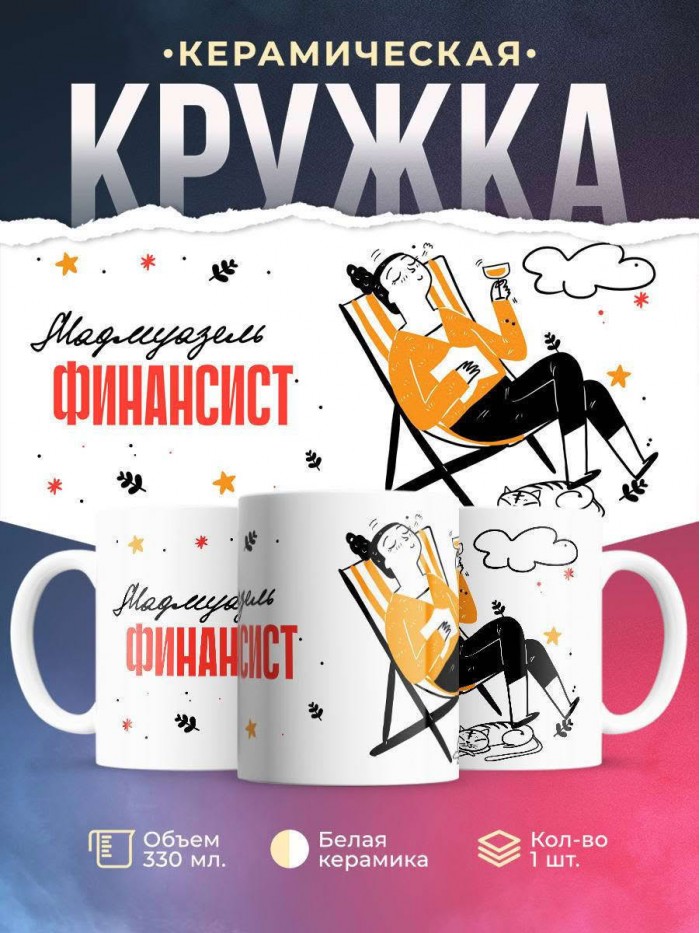 Сувенирная белая кружка с принтом "Мадмуазель финансист" – отличный подарок родным и близким людям для любого случая. Уникальный дизайн делает ее неповторимой и привлекательной для глаз. Принты могут быть разными: от ярких креативных решений, которые идеально подойдут молодежи, до классических элегантных узоров, радующих взгляд людей любого поколения во время чаепития. Рисунок наносится с использованием специализированного оборудования, материалами, прошедшими испытания на пригодность к использованию в быту.