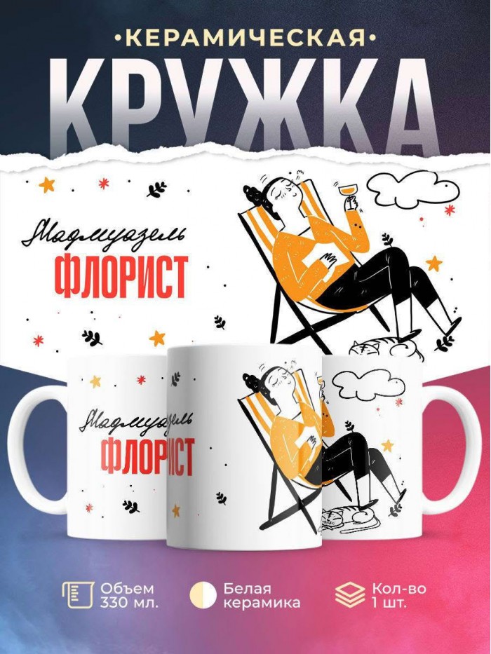 Сувенирная белая кружка с принтом "Мадмуазель флорист" – отличный подарок родным и близким людям для любого случая. Уникальный дизайн делает ее неповторимой и привлекательной для глаз. Принты могут быть разными: от ярких креативных решений, которые идеально подойдут молодежи, до классических элегантных узоров, радующих взгляд людей любого поколения во время чаепития. Рисунок наносится с использованием специализированного оборудования, материалами, прошедшими испытания на пригодность к использованию в быту.