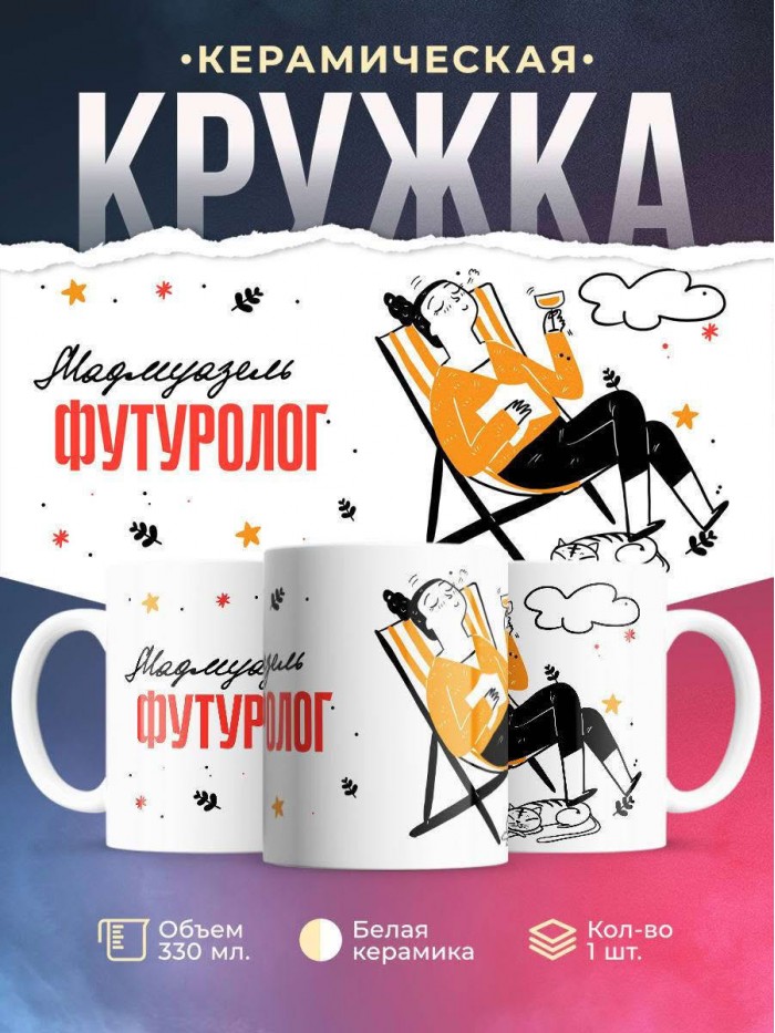 Сувенирная белая кружка с принтом "Мадмуазель футуролог" – отличный подарок родным и близким людям для любого случая. Уникальный дизайн делает ее неповторимой и привлекательной для глаз. Принты могут быть разными: от ярких креативных решений, которые идеально подойдут молодежи, до классических элегантных узоров, радующих взгляд людей любого поколения во время чаепития. Рисунок наносится с использованием специализированного оборудования, материалами, прошедшими испытания на пригодность к использованию в быту.