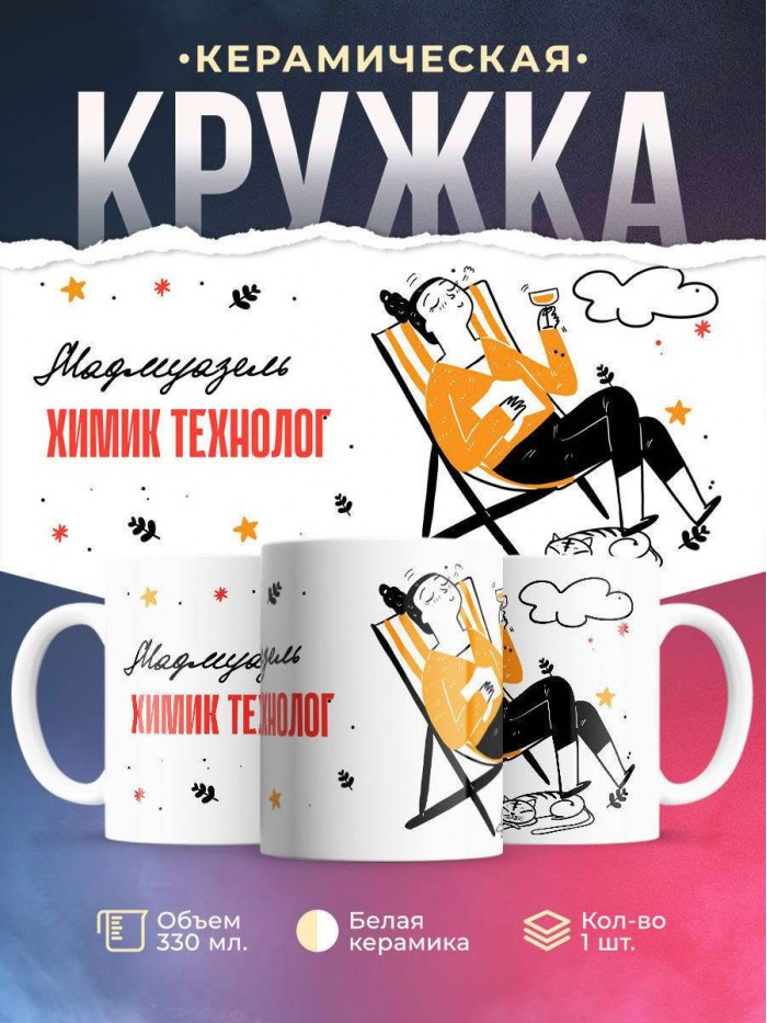 Сувенирная белая кружка с принтом "Мадмуазель химик технолог" – отличный подарок родным и близким людям для любого случая. Уникальный дизайн делает ее неповторимой и привлекательной для глаз. Принты могут быть разными: от ярких креативных решений, которые идеально подойдут молодежи, до классических элегантных узоров, радующих взгляд людей любого поколения во время чаепития. Рисунок наносится с использованием специализированного оборудования, материалами, прошедшими испытания на пригодность к использованию в быту.