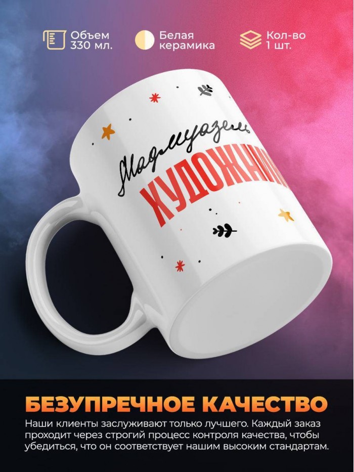 Сувенирная белая кружка с принтом "Мадмуазель художник" – отличный подарок родным и близким людям для любого случая. Уникальный дизайн делает ее неповторимой и привлекательной для глаз. Принты могут быть разными: от ярких креативных решений, которые идеально подойдут молодежи, до классических элегантных узоров, радующих взгляд людей любого поколения во время чаепития. Рисунок наносится с использованием специализированного оборудования, материалами, прошедшими испытания на пригодность к использованию в быту.