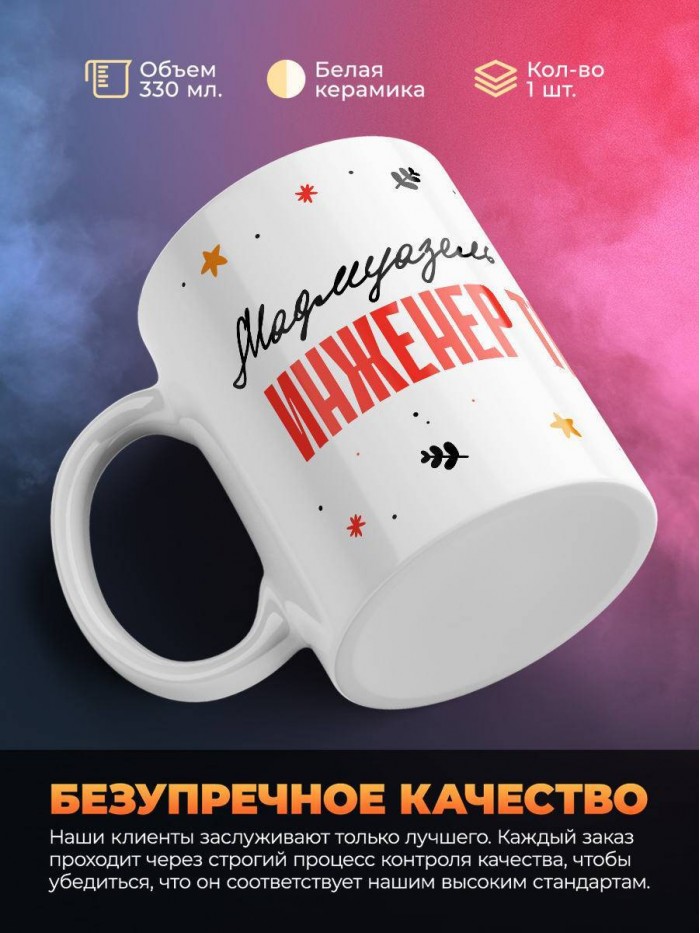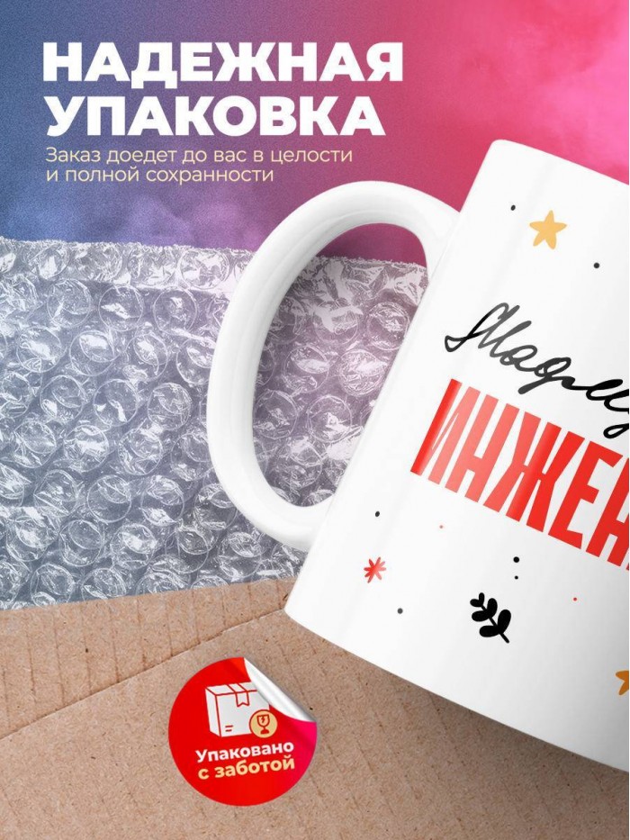 Кружка изготовлена из качественной керамики. Это обеспечивает долгий срок службы продукта. Прочный материал кружки выдерживает физические воздействия. Ее легко можно брать с собой в путешествие, без страха возникновения повреждений. Она удобна в использовании и легко моется. Покрытие кружки выдерживает мытье с применением бытовой химии любого типа. Белый цвет бокала идеально сочетается с принтами. Это делает ее универсальным подарком к празднику для людей всех возрастов и полов. При заказе можно выбрать вариант, который больше подойдет для определенного клиента.