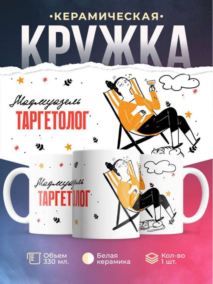 Сувенирная белая кружка с принтом "Мадмуазель таргетолог" – отличный подарок родным и близким людям для любого случая. Уникальный дизайн делает ее неповторимой и привлекательной для глаз. Принты могут быть разными: от ярких креативных решений, которые идеально подойдут молодежи, до классических элегантных узоров, радующих взгляд людей любого поколения во время чаепития. Рисунок наносится с использованием специализированного оборудования, материалами, прошедшими испытания на пригодность к использованию в быту.