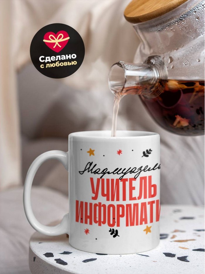 Сувенирная белая кружка с принтом "Мадмуазель учитель информатики" – отличный подарок родным и близким людям для любого случая. Уникальный дизайн делает ее неповторимой и привлекательной для глаз. Принты могут быть разными: от ярких креативных решений, которые идеально подойдут молодежи, до классических элегантных узоров, радующих взгляд людей любого поколения во время чаепития. Рисунок наносится с использованием специализированного оборудования, материалами, прошедшими испытания на пригодность к использованию в быту.