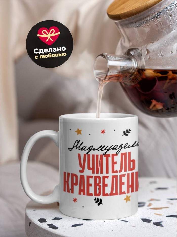 Сувенирная белая кружка с принтом "Мадмуазель учитель краеведения" – отличный подарок родным и близким людям для любого случая. Уникальный дизайн делает ее неповторимой и привлекательной для глаз. Принты могут быть разными: от ярких креативных решений, которые идеально подойдут молодежи, до классических элегантных узоров, радующих взгляд людей любого поколения во время чаепития. Рисунок наносится с использованием специализированного оборудования, материалами, прошедшими испытания на пригодность к использованию в быту.