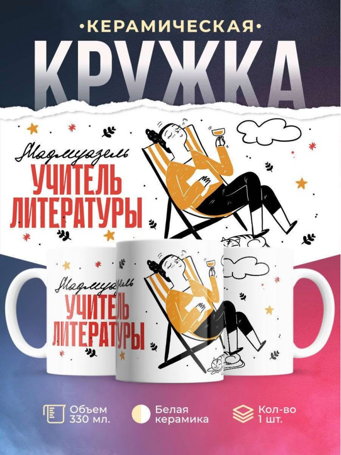 Сувенирная белая кружка с принтом "Мадмуазель учитель литературы" – отличный подарок родным и близким людям для любого случая. Уникальный дизайн делает ее неповторимой и привлекательной для глаз. Принты могут быть разными: от ярких креативных решений, которые идеально подойдут молодежи, до классических элегантных узоров, радующих взгляд людей любого поколения во время чаепития. Рисунок наносится с использованием специализированного оборудования, материалами, прошедшими испытания на пригодность к использованию в быту.