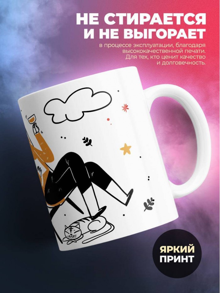 Кружка с принтами поможет подчеркнуть индивидуальность и стиль, а также выделит владельца, из серой массы коллег на работе. Она станет отличным дополнением к утреннему кофе или вечернему чаепитию. Сувенирная кружка с изображениями высокого качества, станет незаменимым элементом интерьера вашей кухни или рабочего стола. Подарите себе или близким удовольствие от использования красивой и стильной кружки с принтами. Она украсит рабочее место, добавит в дом уюта и комфорта, а также напомнит о заботе, подарившего ее человека.