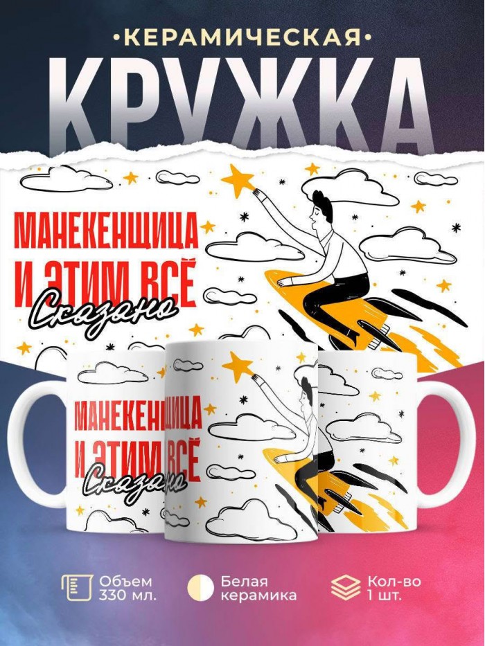 Сувенирная белая кружка с принтом "Манекенщица и этим все сказано" – отличный подарок родным и близким людям для любого случая. Уникальный дизайн делает ее неповторимой и привлекательной для глаз. Принты могут быть разными: от ярких креативных решений, которые идеально подойдут молодежи, до классических элегантных узоров, радующих взгляд людей любого поколения во время чаепития. Рисунок наносится с использованием специализированного оборудования, материалами, прошедшими испытания на пригодность к использованию в быту.