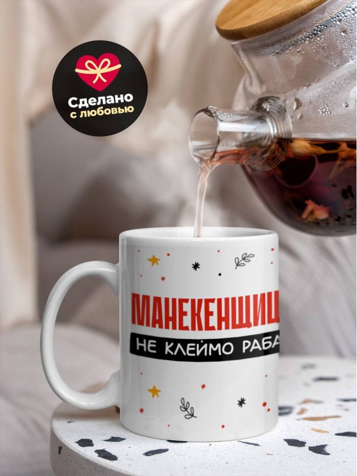 Сувенирная белая кружка с принтом "Манекенщица не клеймо раба, а запись в трудовой книжке" – отличный подарок родным и близким людям для любого случая. Уникальный дизайн делает ее неповторимой и привлекательной для глаз. Принты могут быть разными: от ярких креативных решений, которые идеально подойдут молодежи, до классических элегантных узоров, радующих взгляд людей любого поколения во время чаепития. Рисунок наносится с использованием специализированного оборудования, материалами, прошедшими испытания на пригодность к использованию в быту.