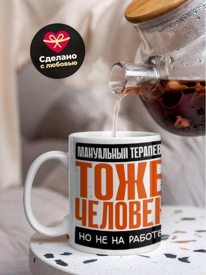Сувенирная белая кружка с принтом "Мануальный терапевт тоже человек, но не на работе" – отличный подарок родным и близким людям для любого случая. Уникальный дизайн делает ее неповторимой и привлекательной для глаз. Принты могут быть разными: от ярких креативных решений, которые идеально подойдут молодежи, до классических элегантных узоров, радующих взгляд людей любого поколения во время чаепития. Рисунок наносится с использованием специализированного оборудования, материалами, прошедшими испытания на пригодность к использованию в быту.