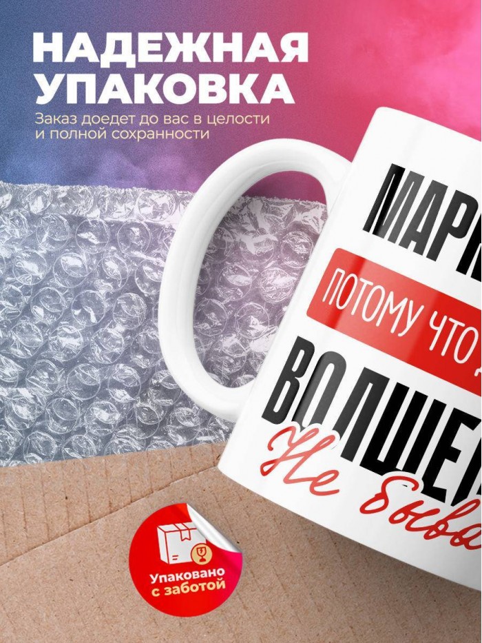 Кружка изготовлена из качественной керамики. Это обеспечивает долгий срок службы продукта. Прочный материал кружки выдерживает физические воздействия. Ее легко можно брать с собой в путешествие, без страха возникновения повреждений. Она удобна в использовании и легко моется. Покрытие кружки выдерживает мытье с применением бытовой химии любого типа. Белый цвет бокала идеально сочетается с принтами. Это делает ее универсальным подарком к празднику для людей всех возрастов и полов. При заказе можно выбрать вариант, который больше подойдет для определенного клиента.