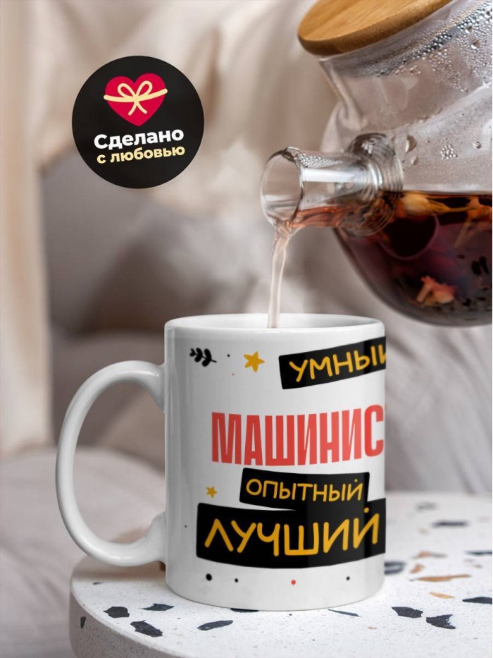 Сувенирная белая кружка с принтом "Машинист умный опытный лучший" – отличный подарок родным и близким людям для любого случая. Уникальный дизайн делает ее неповторимой и привлекательной для глаз. Принты могут быть разными: от ярких креативных решений, которые идеально подойдут молодежи, до классических элегантных узоров, радующих взгляд людей любого поколения во время чаепития. Рисунок наносится с использованием специализированного оборудования, материалами, прошедшими испытания на пригодность к использованию в быту.