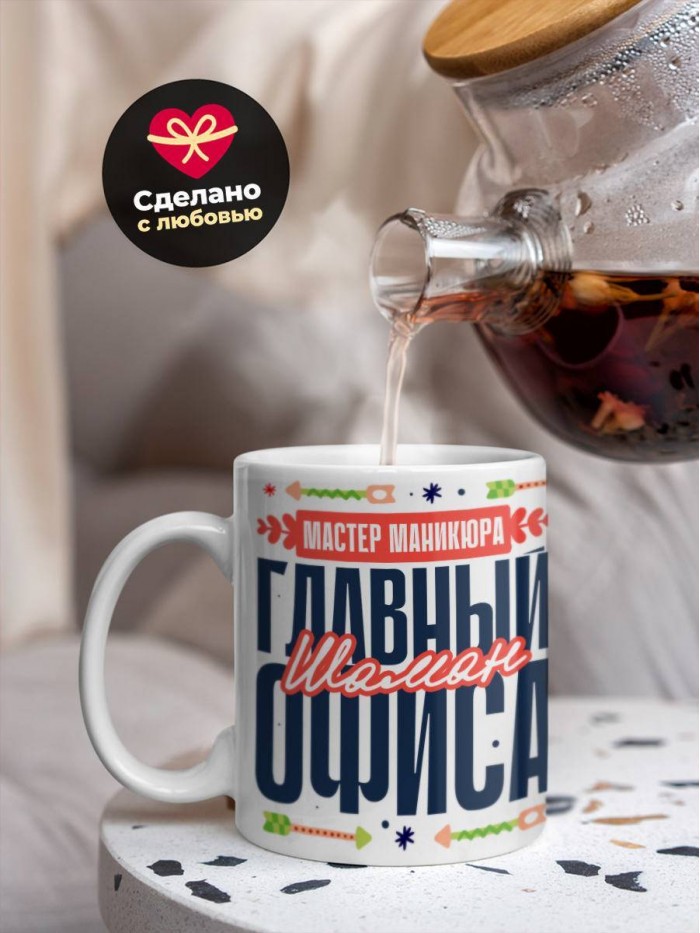 Сувенирная белая кружка с принтом "Мастер маникюра главный шаман офиса" – отличный подарок родным и близким людям для любого случая. Уникальный дизайн делает ее неповторимой и привлекательной для глаз. Принты могут быть разными: от ярких креативных решений, которые идеально подойдут молодежи, до классических элегантных узоров, радующих взгляд людей любого поколения во время чаепития. Рисунок наносится с использованием специализированного оборудования, материалами, прошедшими испытания на пригодность к использованию в быту.