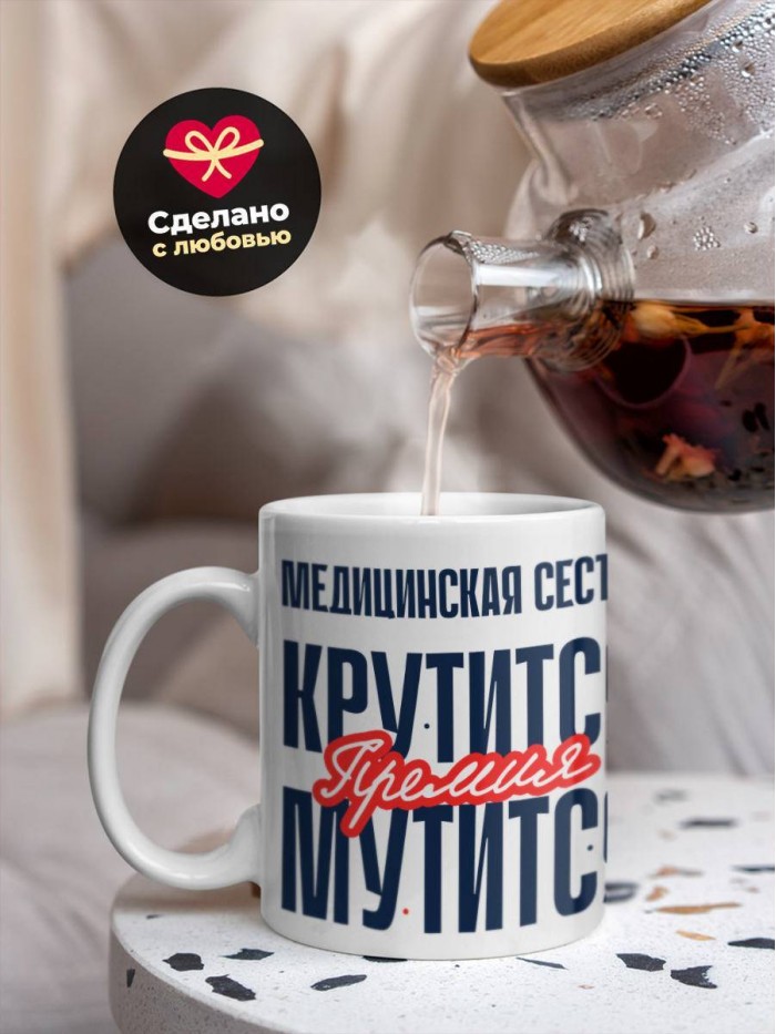 Сувенирная белая кружка с принтом "Медицинская сестра крутится премия мутится" – отличный подарок родным и близким людям для любого случая. Уникальный дизайн делает ее неповторимой и привлекательной для глаз. Принты могут быть разными: от ярких креативных решений, которые идеально подойдут молодежи, до классических элегантных узоров, радующих взгляд людей любого поколения во время чаепития. Рисунок наносится с использованием специализированного оборудования, материалами, прошедшими испытания на пригодность к использованию в быту.
