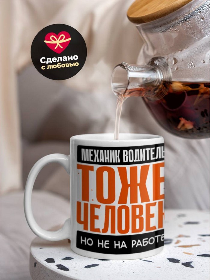 Сувенирная белая кружка с принтом "Механик водитель тоже человек, но не на работе" – отличный подарок родным и близким людям для любого случая. Уникальный дизайн делает ее неповторимой и привлекательной для глаз. Принты могут быть разными: от ярких креативных решений, которые идеально подойдут молодежи, до классических элегантных узоров, радующих взгляд людей любого поколения во время чаепития. Рисунок наносится с использованием специализированного оборудования, материалами, прошедшими испытания на пригодность к использованию в быту.