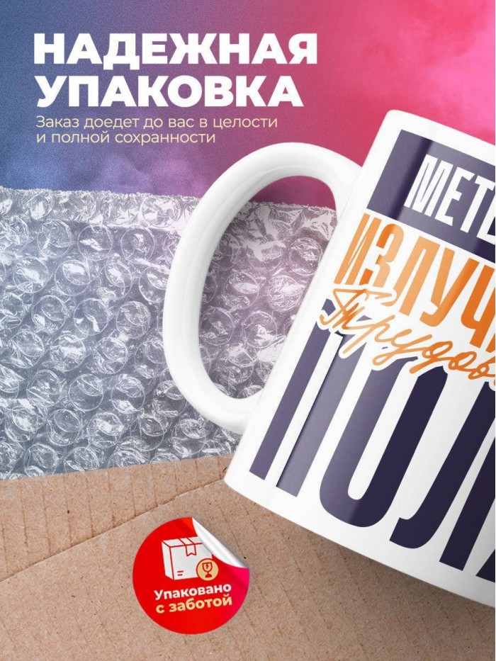 Кружка изготовлена из качественной керамики. Это обеспечивает долгий срок службы продукта. Прочный материал кружки выдерживает физические воздействия. Ее легко можно брать с собой в путешествие, без страха возникновения повреждений. Она удобна в использовании и легко моется. Покрытие кружки выдерживает мытье с применением бытовой химии любого типа. Белый цвет бокала идеально сочетается с принтами. Это делает ее универсальным подарком к празднику для людей всех возрастов и полов. При заказе можно выбрать вариант, который больше подойдет для определенного клиента.