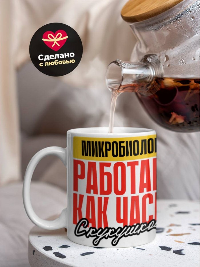 Сувенирная белая кружка с принтом "Микробиолог работаю как часы с кукушкой" – отличный подарок родным и близким людям для любого случая. Уникальный дизайн делает ее неповторимой и привлекательной для глаз. Принты могут быть разными: от ярких креативных решений, которые идеально подойдут молодежи, до классических элегантных узоров, радующих взгляд людей любого поколения во время чаепития. Рисунок наносится с использованием специализированного оборудования, материалами, прошедшими испытания на пригодность к использованию в быту.