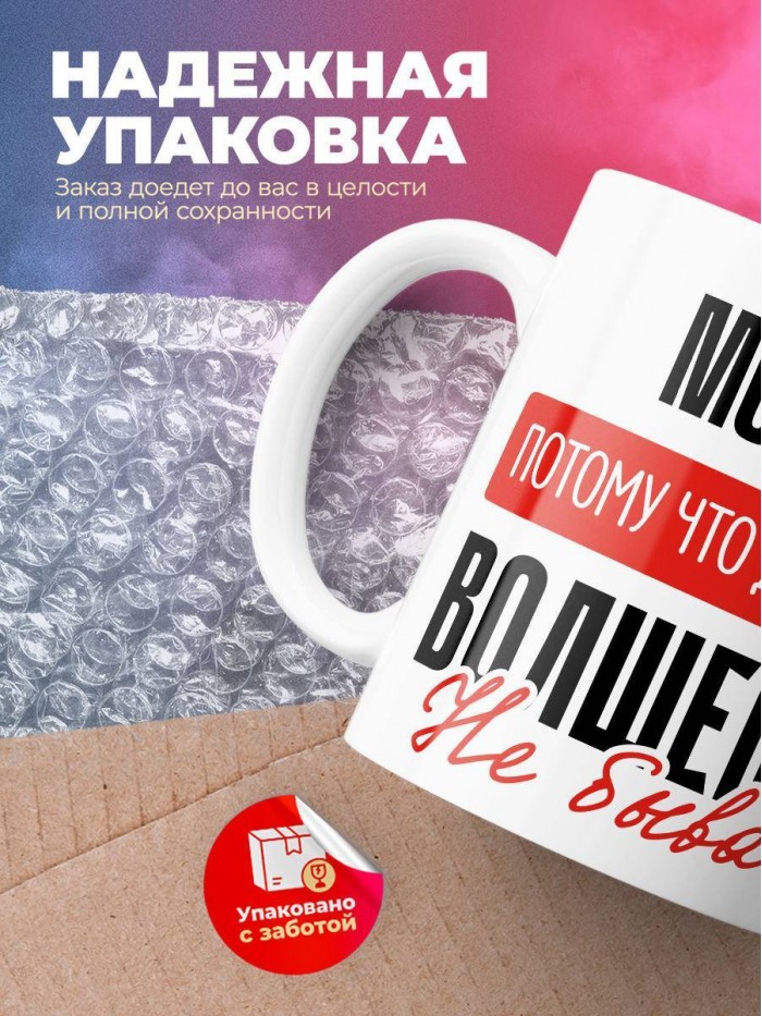 Кружка изготовлена из качественной керамики. Это обеспечивает долгий срок службы продукта. Прочный материал кружки выдерживает физические воздействия. Ее легко можно брать с собой в путешествие, без страха возникновения повреждений. Она удобна в использовании и легко моется. Покрытие кружки выдерживает мытье с применением бытовой химии любого типа. Белый цвет бокала идеально сочетается с принтами. Это делает ее универсальным подарком к празднику для людей всех возрастов и полов. При заказе можно выбрать вариант, который больше подойдет для определенного клиента.