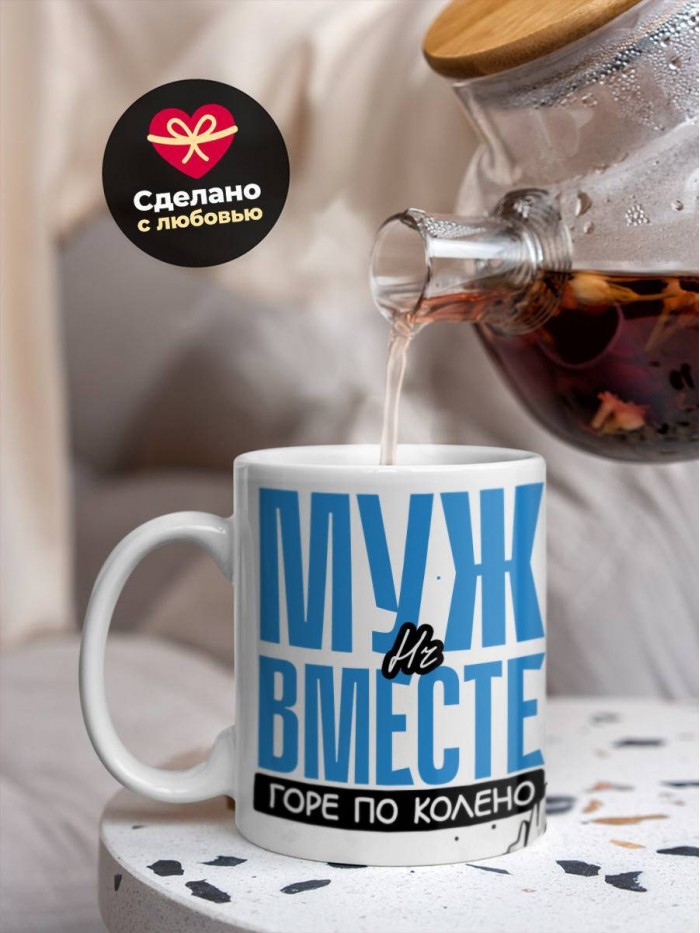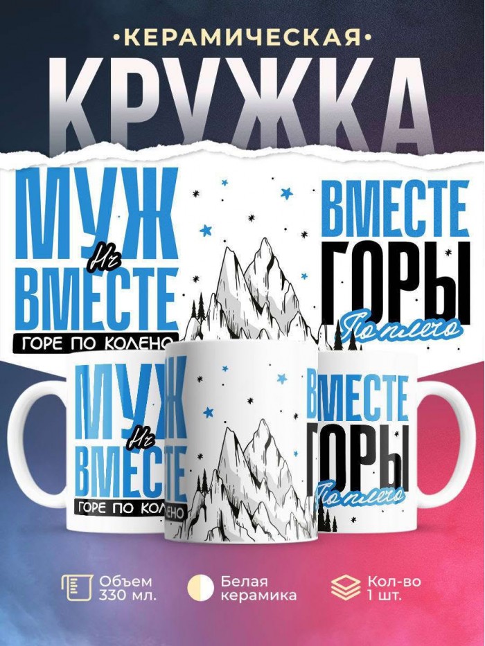 Сувенирная белая кружка с принтом "Муж hr вместе горе по колено вместе горы по плечо" – отличный подарок родным и близким людям для любого случая. Уникальный дизайн делает ее неповторимой и привлекательной для глаз. Принты могут быть разными: от ярких креативных решений, которые идеально подойдут молодежи, до классических элегантных узоров, радующих взгляд людей любого поколения во время чаепития. Рисунок наносится с использованием специализированного оборудования, материалами, прошедшими испытания на пригодность к использованию в быту.