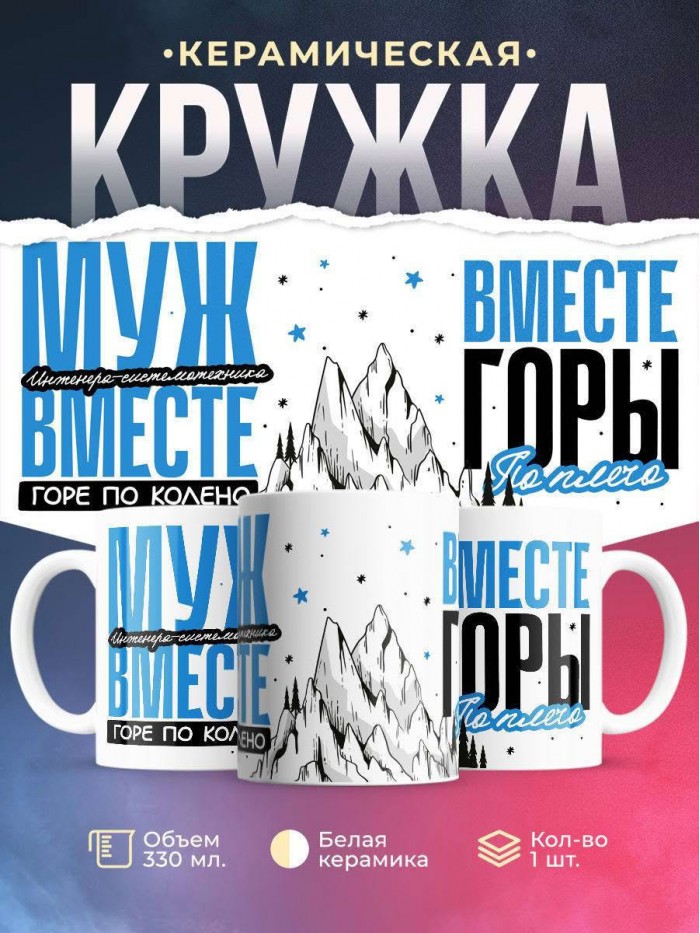 Сувенирная белая кружка с принтом "Муж инженера-системотехника вместе горе по колено вместе горы по плечо" – отличный подарок родным и близким людям для любого случая. Уникальный дизайн делает ее неповторимой и привлекательной для глаз. Принты могут быть разными: от ярких креативных решений, которые идеально подойдут молодежи, до классических элегантных узоров, радующих взгляд людей любого поколения во время чаепития. Рисунок наносится с использованием специализированного оборудования, материалами, прошедшими испытания на пригодность к использованию в быту.