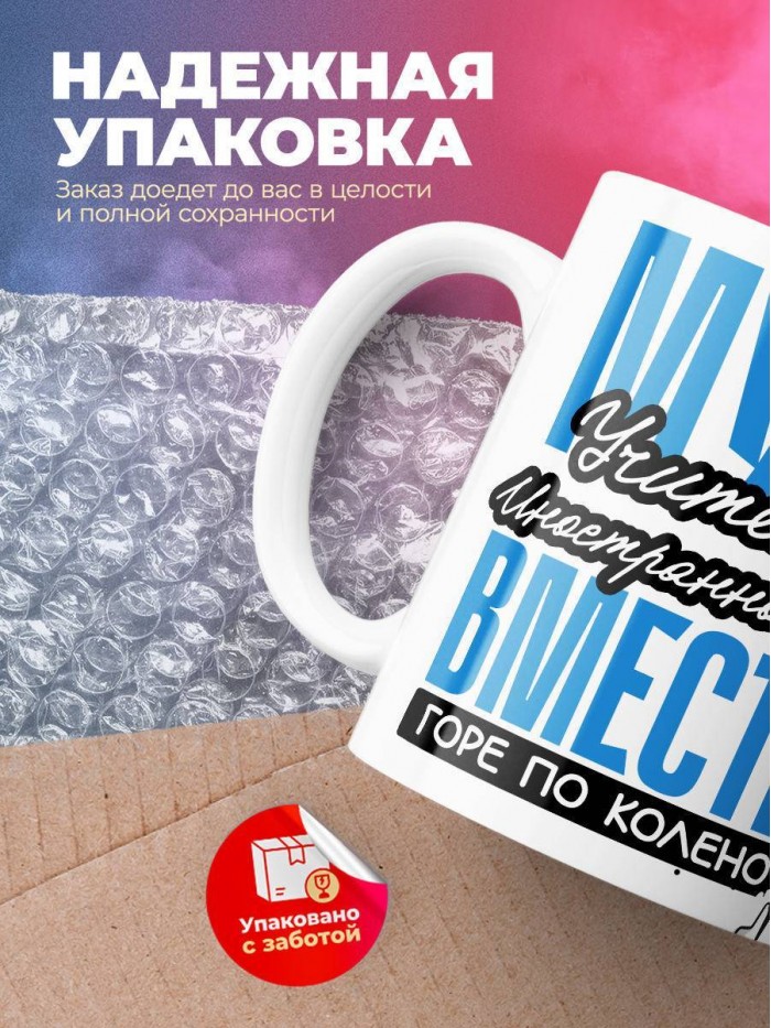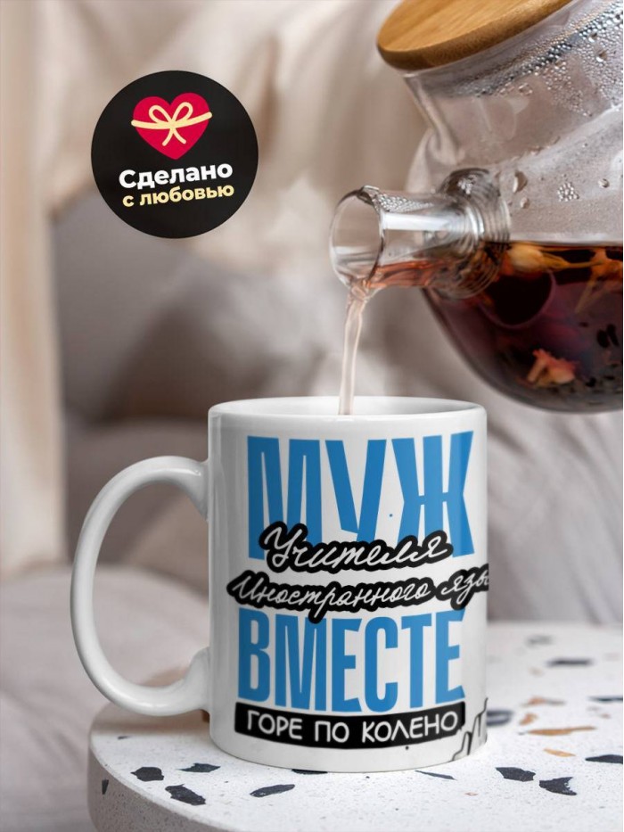Сувенирная белая кружка с принтом "Муж учителя иностранного языка вместе горе по колено, вместе горы по плечо" – отличный подарок родным и близким людям для любого случая. Уникальный дизайн делает ее неповторимой и привлекательной для глаз. Принты могут быть разными: от ярких креативных решений, которые идеально подойдут молодежи, до классических элегантных узоров, радующих взгляд людей любого поколения во время чаепития. Рисунок наносится с использованием специализированного оборудования, материалами, прошедшими испытания на пригодность к использованию в быту.