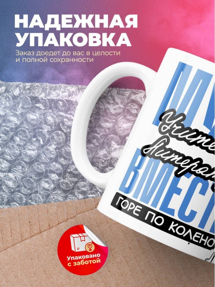 Сувенирная белая кружка с принтом "Муж учителя литературы вместе горе по колено, вместе горы по плечо" – отличный подарок родным и близким людям для любого случая. Уникальный дизайн делает ее неповторимой и привлекательной для глаз. Принты могут быть разными: от ярких креативных решений, которые идеально подойдут молодежи, до классических элегантных узоров, радующих взгляд людей любого поколения во время чаепития. Рисунок наносится с использованием специализированного оборудования, материалами, прошедшими испытания на пригодность к использованию в быту.