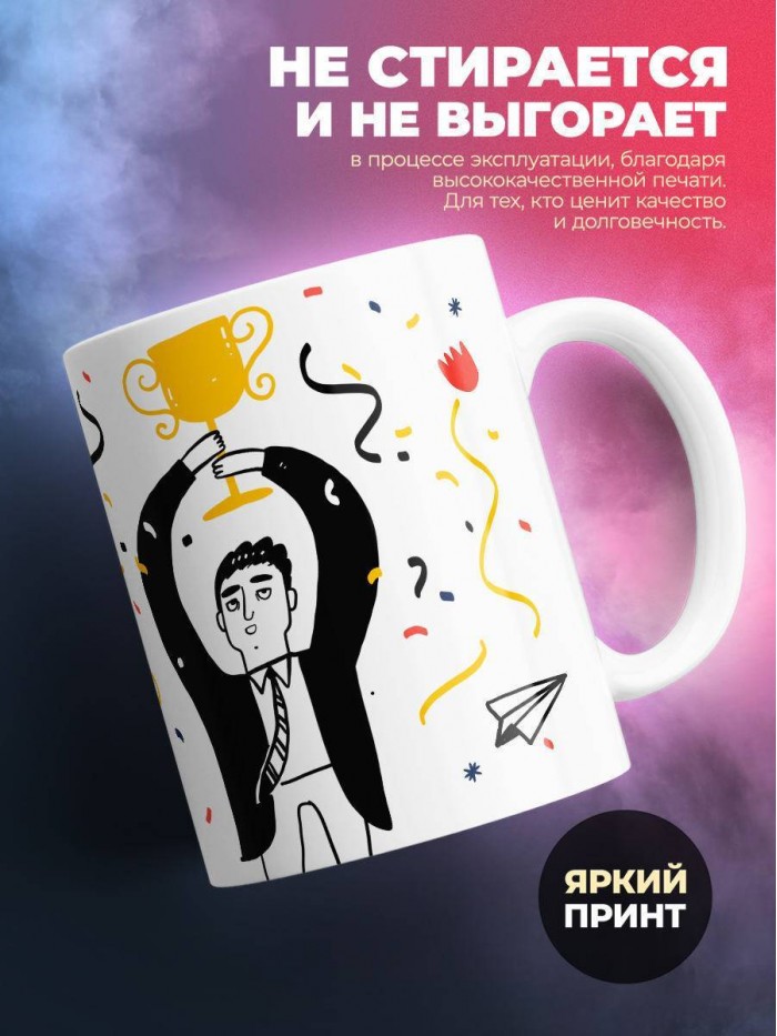Кружка с принтами поможет подчеркнуть индивидуальность и стиль, а также выделит владельца, из серой массы коллег на работе. Она станет отличным дополнением к утреннему кофе или вечернему чаепитию. Сувенирная кружка с изображениями высокого качества, станет незаменимым элементом интерьера вашей кухни или рабочего стола. Подарите себе или близким удовольствие от использования красивой и стильной кружки с принтами. Она украсит рабочее место, добавит в дом уюта и комфорта, а также напомнит о заботе, подарившего ее человека.