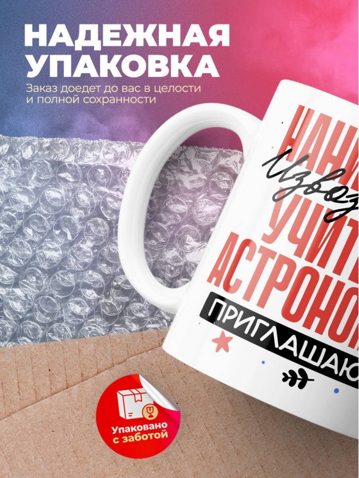 Сувенирная белая кружка с принтом "Нанимают извозчика учителя астрономии приглашают" – отличный подарок родным и близким людям для любого случая. Уникальный дизайн делает ее неповторимой и привлекательной для глаз. Принты могут быть разными: от ярких креативных решений, которые идеально подойдут молодежи, до классических элегантных узоров, радующих взгляд людей любого поколения во время чаепития. Рисунок наносится с использованием специализированного оборудования, материалами, прошедшими испытания на пригодность к использованию в быту.