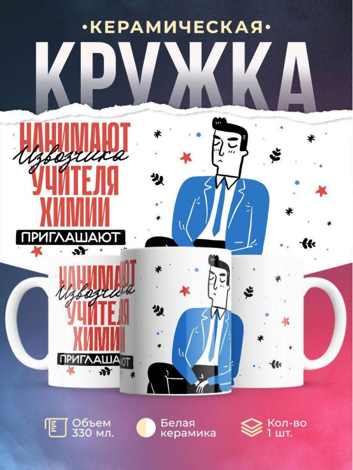 Сувенирная белая кружка с принтом "Нанимают извозчика учителя химии приглашают" – отличный подарок родным и близким людям для любого случая. Уникальный дизайн делает ее неповторимой и привлекательной для глаз. Принты могут быть разными: от ярких креативных решений, которые идеально подойдут молодежи, до классических элегантных узоров, радующих взгляд людей любого поколения во время чаепития. Рисунок наносится с использованием специализированного оборудования, материалами, прошедшими испытания на пригодность к использованию в быту.