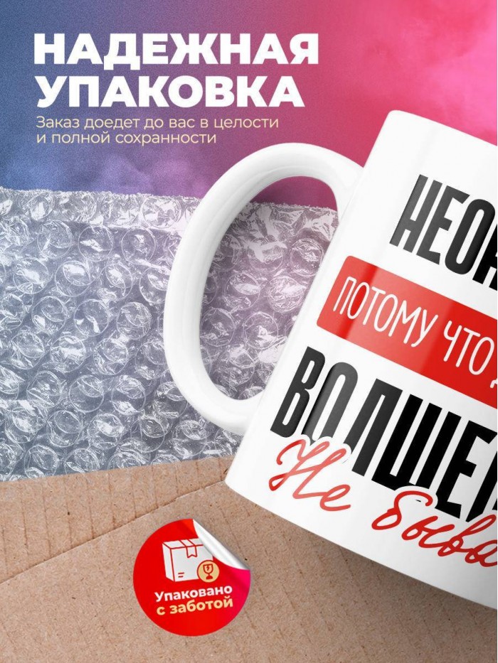 Кружка изготовлена из качественной керамики. Это обеспечивает долгий срок службы продукта. Прочный материал кружки выдерживает физические воздействия. Ее легко можно брать с собой в путешествие, без страха возникновения повреждений. Она удобна в использовании и легко моется. Покрытие кружки выдерживает мытье с применением бытовой химии любого типа. Белый цвет бокала идеально сочетается с принтами. Это делает ее универсальным подарком к празднику для людей всех возрастов и полов. При заказе можно выбрать вариант, который больше подойдет для определенного клиента.