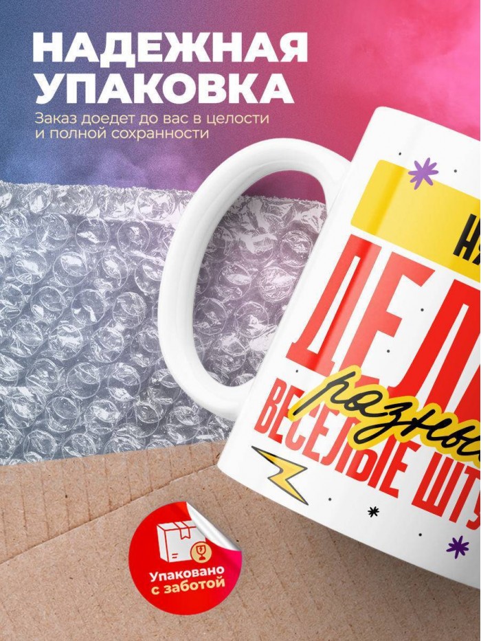 Кружка изготовлена из качественной керамики. Это обеспечивает долгий срок службы продукта. Прочный материал кружки выдерживает физические воздействия. Ее легко можно брать с собой в путешествие, без страха возникновения повреждений. Она удобна в использовании и легко моется. Покрытие кружки выдерживает мытье с применением бытовой химии любого типа. Белый цвет бокала идеально сочетается с принтами. Это делает ее универсальным подарком к празднику для людей всех возрастов и полов. При заказе можно выбрать вариант, который больше подойдет для определенного клиента.