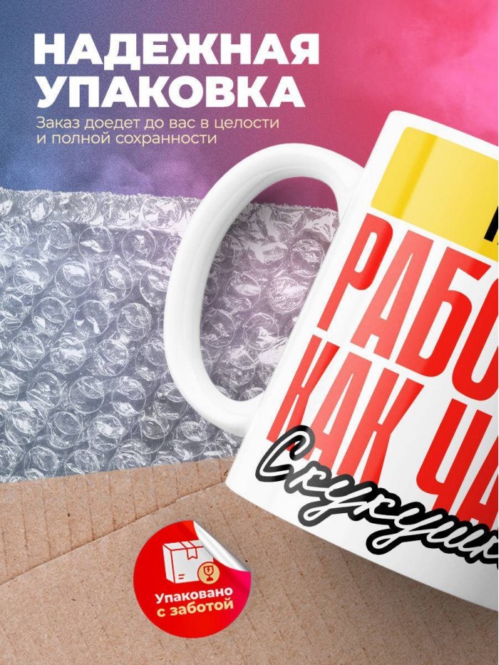 Кружка изготовлена из качественной керамики. Это обеспечивает долгий срок службы продукта. Прочный материал кружки выдерживает физические воздействия. Ее легко можно брать с собой в путешествие, без страха возникновения повреждений. Она удобна в использовании и легко моется. Покрытие кружки выдерживает мытье с применением бытовой химии любого типа. Белый цвет бокала идеально сочетается с принтами. Это делает ее универсальным подарком к празднику для людей всех возрастов и полов. При заказе можно выбрать вариант, который больше подойдет для определенного клиента.