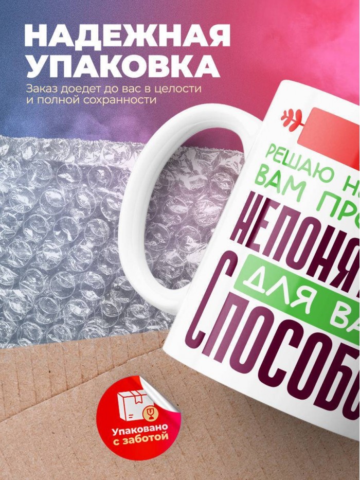 Кружка изготовлена из качественной керамики. Это обеспечивает долгий срок службы продукта. Прочный материал кружки выдерживает физические воздействия. Ее легко можно брать с собой в путешествие, без страха возникновения повреждений. Она удобна в использовании и легко моется. Покрытие кружки выдерживает мытье с применением бытовой химии любого типа. Белый цвет бокала идеально сочетается с принтами. Это делает ее универсальным подарком к празднику для людей всех возрастов и полов. При заказе можно выбрать вариант, который больше подойдет для определенного клиента.