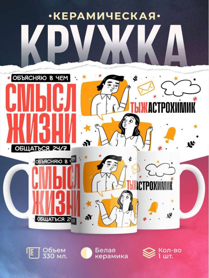 Сувенирная белая кружка с принтом "Объясняю в чем смысл жизни обращаться 24/7 тыжастрохимик" – отличный подарок родным и близким людям для любого случая. Уникальный дизайн делает ее неповторимой и привлекательной для глаз. Принты могут быть разными: от ярких креативных решений, которые идеально подойдут молодежи, до классических элегантных узоров, радующих взгляд людей любого поколения во время чаепития. Рисунок наносится с использованием специализированного оборудования, материалами, прошедшими испытания на пригодность к использованию в быту.