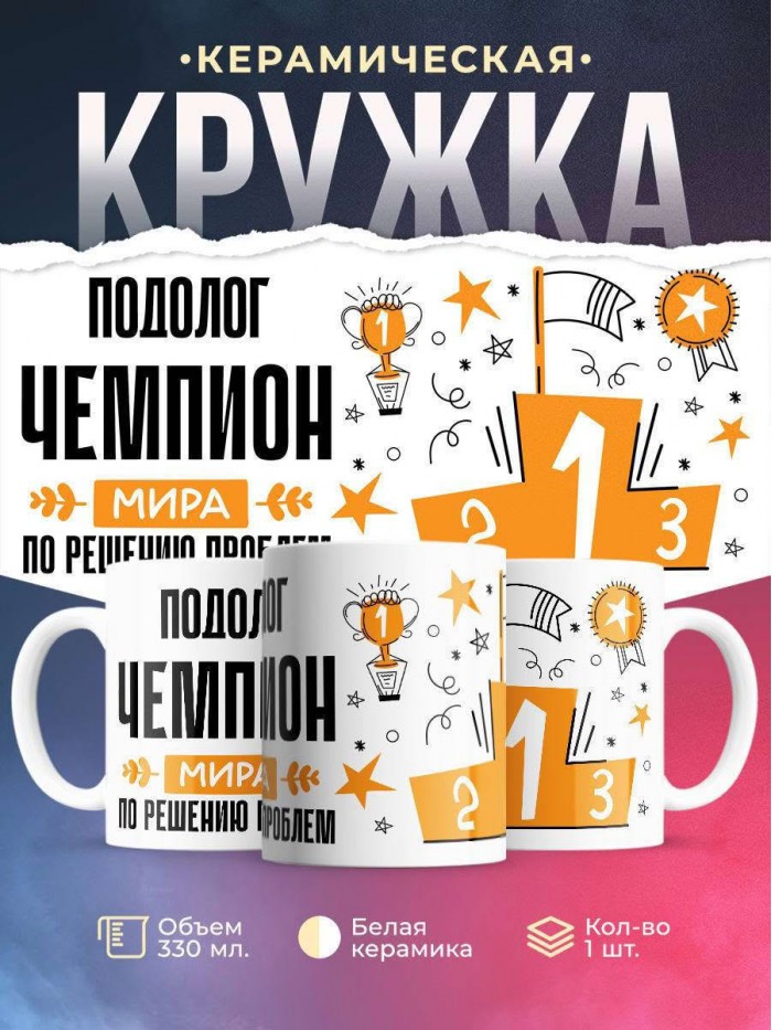 Сувенирная белая кружка с принтом "Подолог чемпион мира по решению проблем" – отличный подарок родным и близким людям для любого случая. Уникальный дизайн делает ее неповторимой и привлекательной для глаз. Принты могут быть разными: от ярких креативных решений, которые идеально подойдут молодежи, до классических элегантных узоров, радующих взгляд людей любого поколения во время чаепития. Рисунок наносится с использованием специализированного оборудования, материалами, прошедшими испытания на пригодность к использованию в быту.