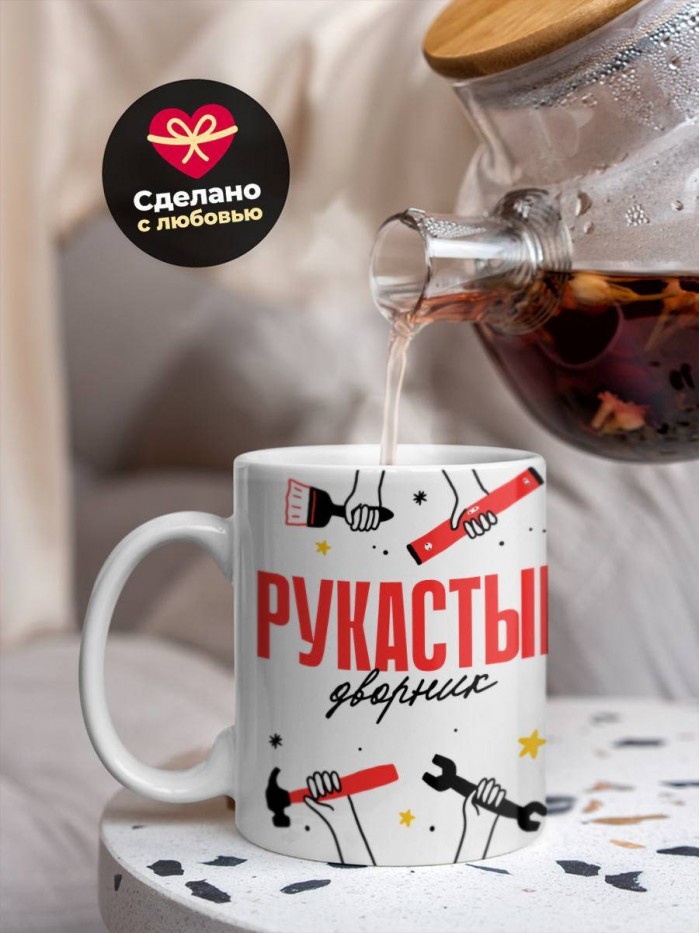 Сувенирная белая кружка с принтом "Рукастый дворник" – отличный подарок родным и близким людям для любого случая. Уникальный дизайн делает ее неповторимой и привлекательной для глаз. Принты могут быть разными: от ярких креативных решений, которые идеально подойдут молодежи, до классических элегантных узоров, радующих взгляд людей любого поколения во время чаепития. Рисунок наносится с использованием специализированного оборудования, материалами, прошедшими испытания на пригодность к использованию в быту.