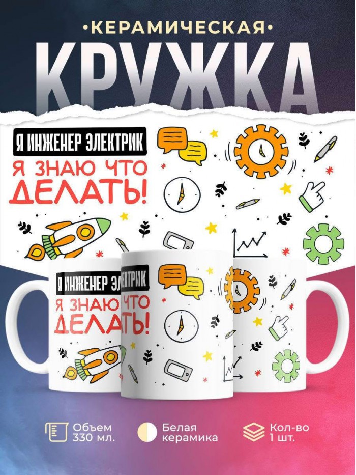 Сувенирная белая кружка с принтом "Я инженер электрик я знаю, что делать" – отличный подарок родным и близким людям для любого случая. Уникальный дизайн делает ее неповторимой и привлекательной для глаз. Принты могут быть разными: от ярких креативных решений, которые идеально подойдут молодежи, до классических элегантных узоров, радующих взгляд людей любого поколения во время чаепития. Рисунок наносится с использованием специализированного оборудования, материалами, прошедшими испытания на пригодность к использованию в быту.
