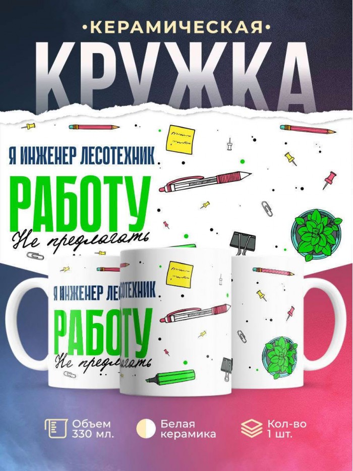 Сувенирная белая кружка с принтом "Я инженер лесотехник работу не предлагать" – отличный подарок родным и близким людям для любого случая. Уникальный дизайн делает ее неповторимой и привлекательной для глаз. Принты могут быть разными: от ярких креативных решений, которые идеально подойдут молодежи, до классических элегантных узоров, радующих взгляд людей любого поколения во время чаепития. Рисунок наносится с использованием специализированного оборудования, материалами, прошедшими испытания на пригодность к использованию в быту.