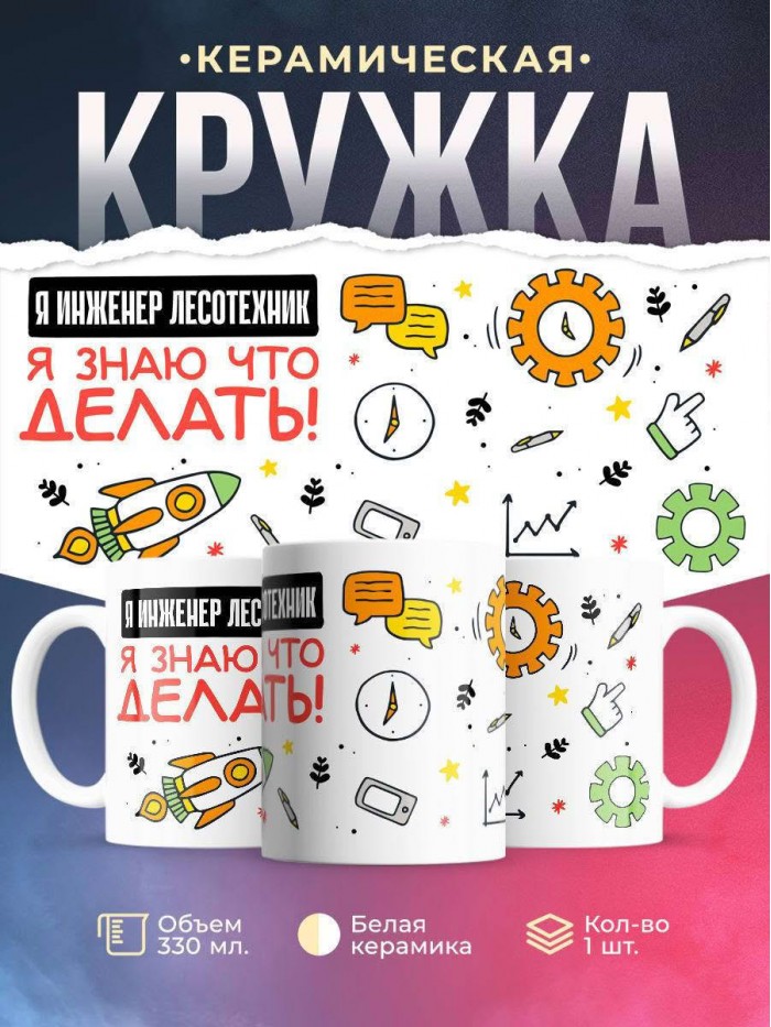 Сувенирная белая кружка с принтом "Я инженер лесотехник я знаю, что делать" – отличный подарок родным и близким людям для любого случая. Уникальный дизайн делает ее неповторимой и привлекательной для глаз. Принты могут быть разными: от ярких креативных решений, которые идеально подойдут молодежи, до классических элегантных узоров, радующих взгляд людей любого поколения во время чаепития. Рисунок наносится с использованием специализированного оборудования, материалами, прошедшими испытания на пригодность к использованию в быту.