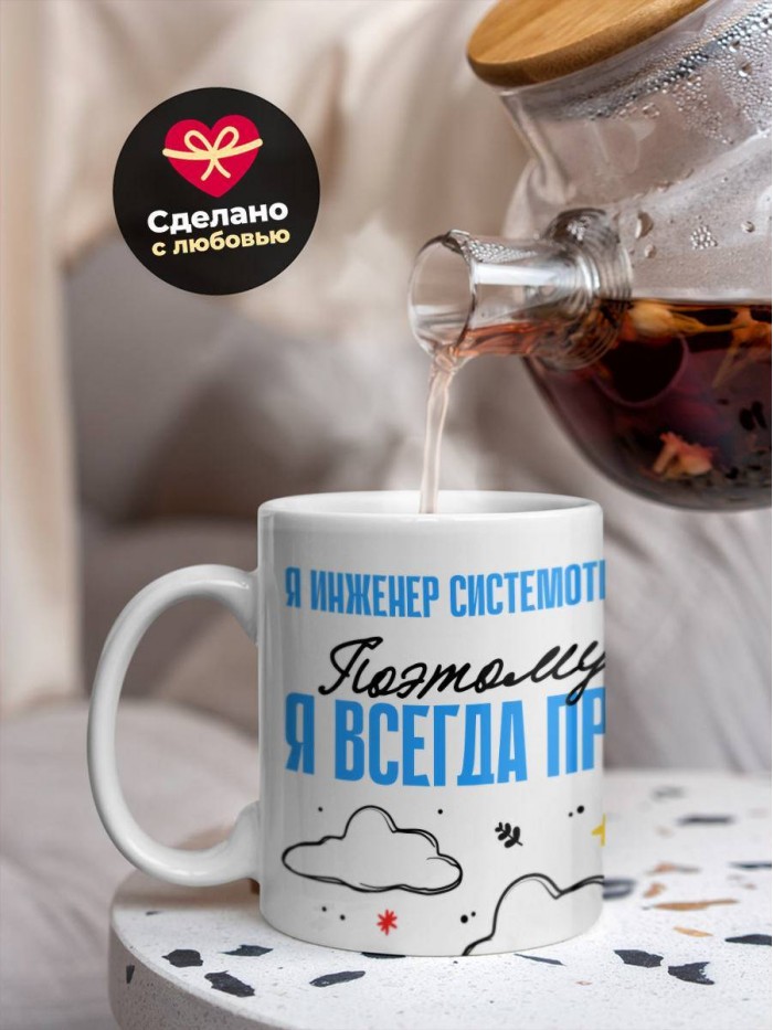 Сувенирная белая кружка с принтом "Я инженер системотехник поэтому я всегда прав" – отличный подарок родным и близким людям для любого случая. Уникальный дизайн делает ее неповторимой и привлекательной для глаз. Принты могут быть разными: от ярких креативных решений, которые идеально подойдут молодежи, до классических элегантных узоров, радующих взгляд людей любого поколения во время чаепития. Рисунок наносится с использованием специализированного оборудования, материалами, прошедшими испытания на пригодность к использованию в быту.