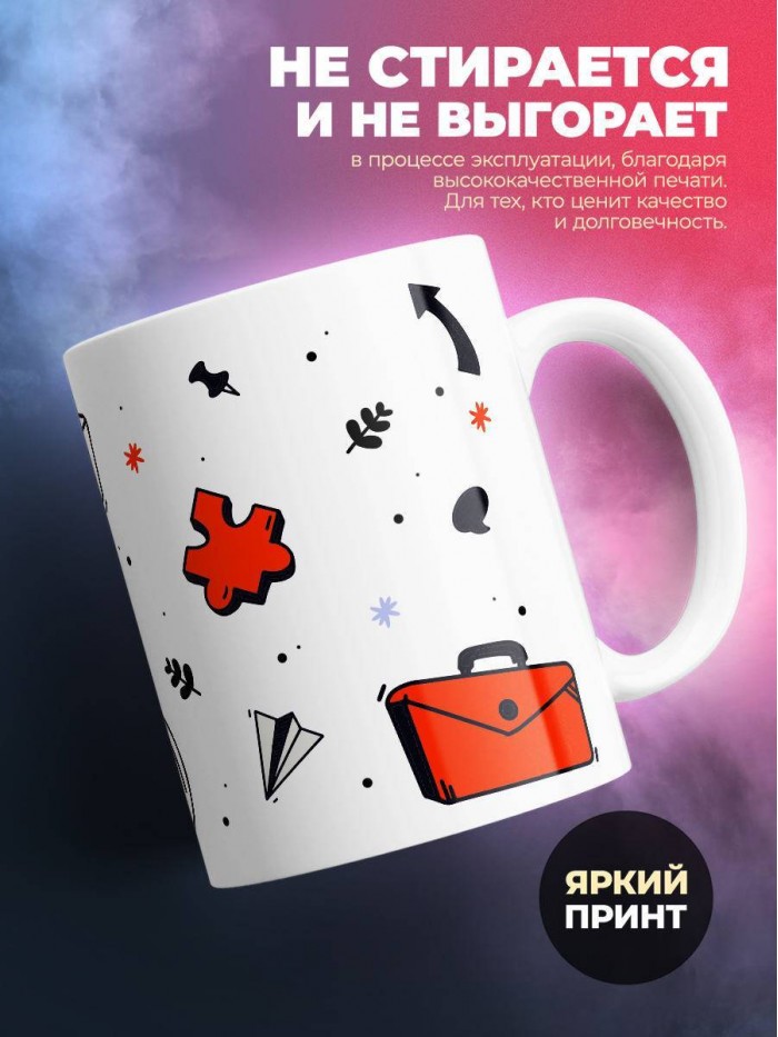 Кружка с принтами поможет подчеркнуть индивидуальность и стиль, а также выделит владельца, из серой массы коллег на работе. Она станет отличным дополнением к утреннему кофе или вечернему чаепитию. Сувенирная кружка с изображениями высокого качества, станет незаменимым элементом интерьера вашей кухни или рабочего стола. Подарите себе или близким удовольствие от использования красивой и стильной кружки с принтами. Она украсит рабочее место, добавит в дом уюта и комфорта, а также напомнит о заботе, подарившего ее человека.
