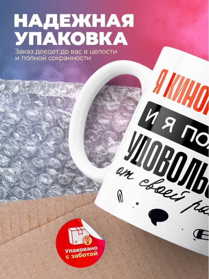 Сувенирная белая кружка с принтом "Я кинорежиссер, и я получаю удовольствие от своей работы" – отличный подарок родным и близким людям для любого случая. Уникальный дизайн делает ее неповторимой и привлекательной для глаз. Принты могут быть разными: от ярких креативных решений, которые идеально подойдут молодежи, до классических элегантных узоров, радующих взгляд людей любого поколения во время чаепития. Рисунок наносится с использованием специализированного оборудования, материалами, прошедшими испытания на пригодность к использованию в быту.