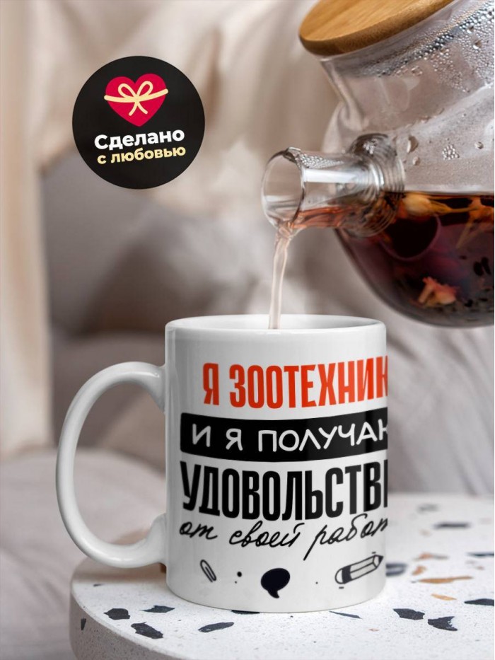 Сувенирная белая кружка с принтом "Я зоотехник, и я получаю удовольствие от своей работы" – отличный подарок родным и близким людям для любого случая. Уникальный дизайн делает ее неповторимой и привлекательной для глаз. Принты могут быть разными: от ярких креативных решений, которые идеально подойдут молодежи, до классических элегантных узоров, радующих взгляд людей любого поколения во время чаепития. Рисунок наносится с использованием специализированного оборудования, материалами, прошедшими испытания на пригодность к использованию в быту.