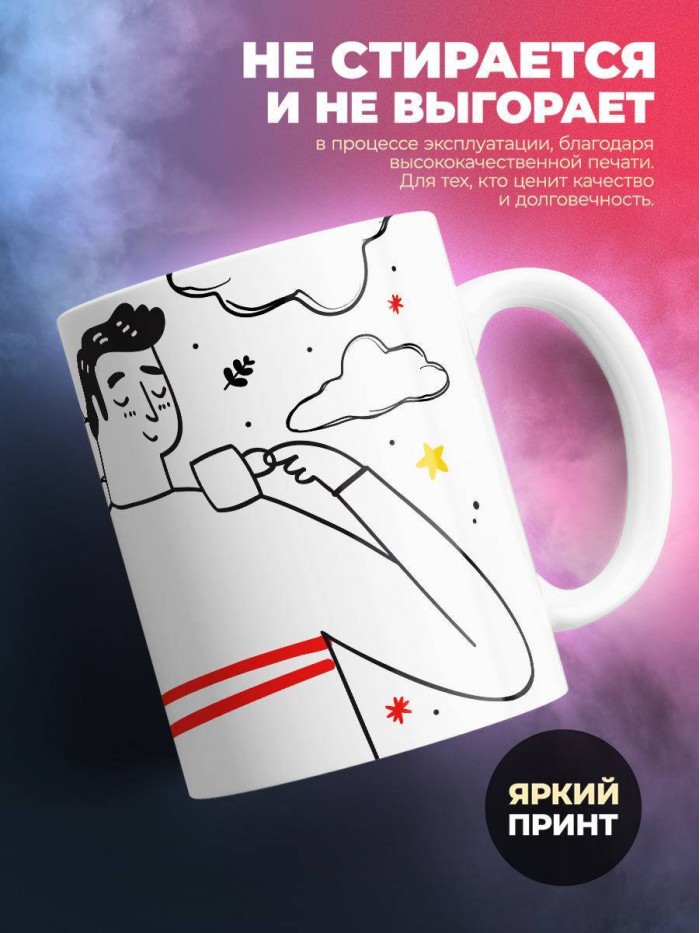 Кружка с принтами поможет подчеркнуть индивидуальность и стиль, а также выделит владельца, из серой массы коллег на работе. Она станет отличным дополнением к утреннему кофе или вечернему чаепитию. Сувенирная кружка с изображениями высокого качества, станет незаменимым элементом интерьера вашей кухни или рабочего стола. Подарите себе или близким удовольствие от использования красивой и стильной кружки с принтами. Она украсит рабочее место, добавит в дом уюта и комфорта, а также напомнит о заботе, подарившего ее человека.