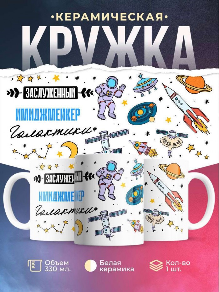 Сувенирная белая кружка с принтом "Заслуженный имиджмейкер галактики" – отличный подарок родным и близким людям для любого случая. Уникальный дизайн делает ее неповторимой и привлекательной для глаз. Принты могут быть разными: от ярких креативных решений, которые идеально подойдут молодежи, до классических элегантных узоров, радующих взгляд людей любого поколения во время чаепития. Рисунок наносится с использованием специализированного оборудования, материалами, прошедшими испытания на пригодность к использованию в быту.