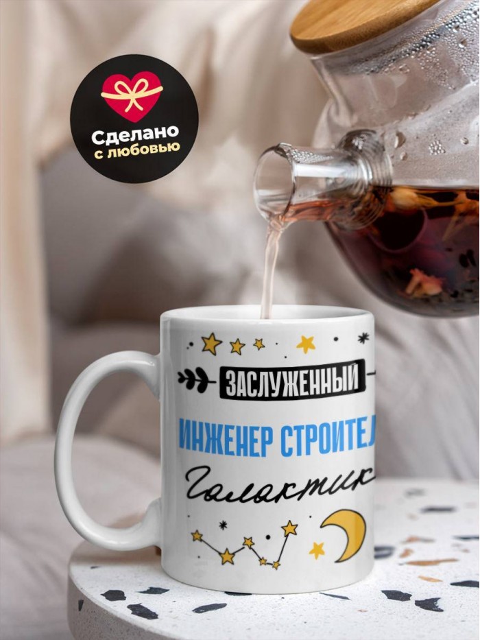 Сувенирная белая кружка с принтом "Заслуженный инженер строитель галактики" – отличный подарок родным и близким людям для любого случая. Уникальный дизайн делает ее неповторимой и привлекательной для глаз. Принты могут быть разными: от ярких креативных решений, которые идеально подойдут молодежи, до классических элегантных узоров, радующих взгляд людей любого поколения во время чаепития. Рисунок наносится с использованием специализированного оборудования, материалами, прошедшими испытания на пригодность к использованию в быту.